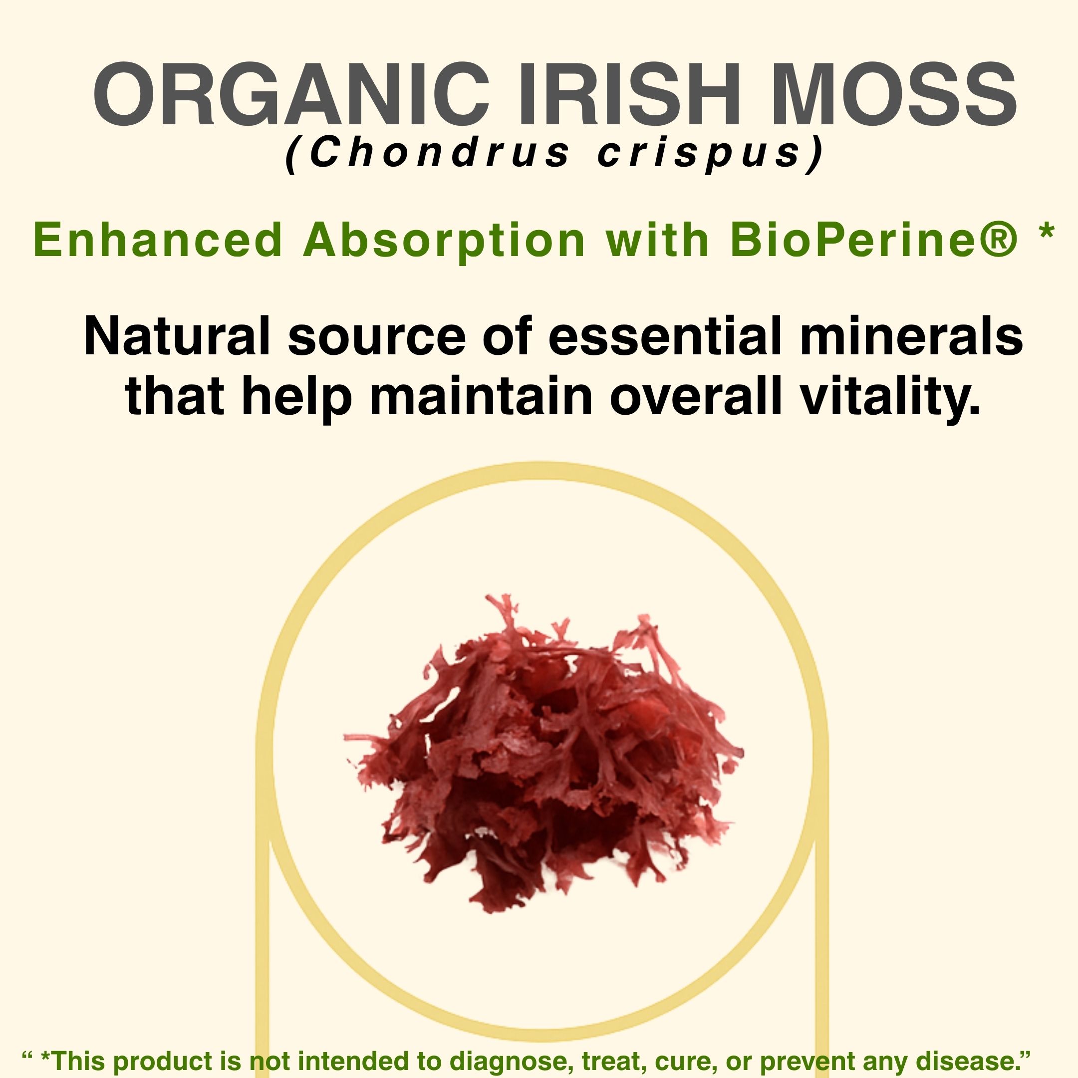 Organic Irish Moss · Bladderwrack · Burdock Root · BioPerine® · 60 Vegan Capsules