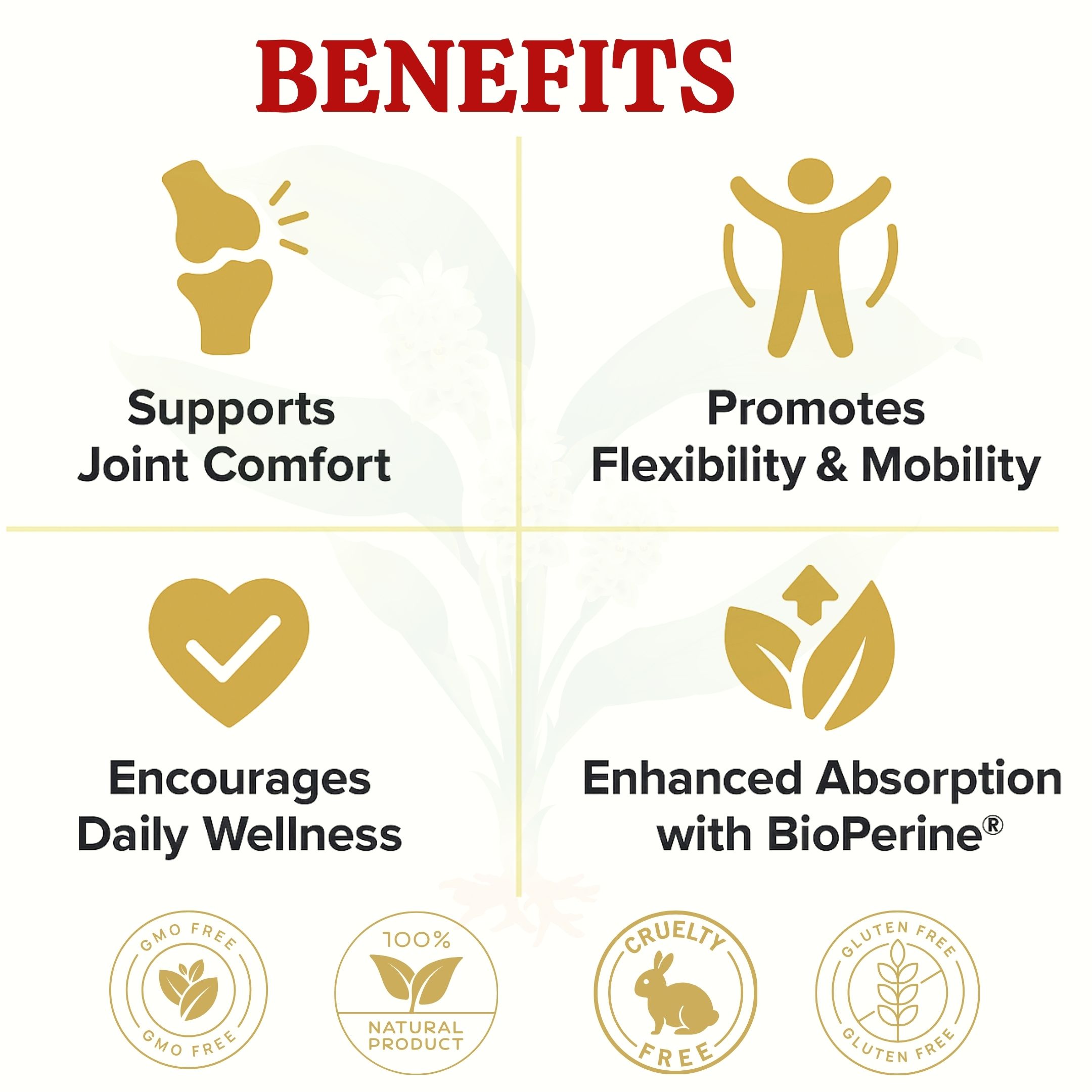 Balanced support across multiple pathways: Joint Comfort · Cartilage Structure · Mobility & Flexibility · Nutrient Absorption*